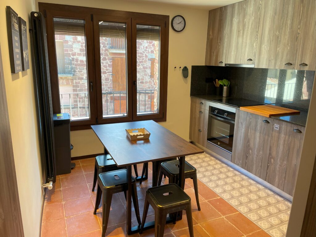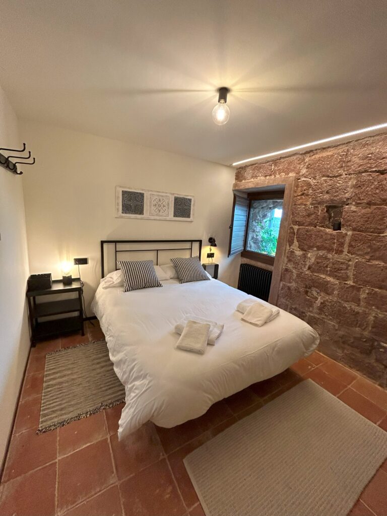 Aquest apartament de 100 m², situat a la primera planta d’una casa històrica, és la millor opció per a famílies nombroses o grups que vulguin compartir moments únics. Els tres dormitoris dobles, envoltats de parets de carreus originals del castell del segle XII i amb vistes a les espectaculars postes de sol de les muntanyes de Prades, aporten un encant especial i un ambient acollidor.
